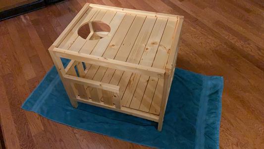 This cat house was incredibly easy to stain and assemble. I ran into zero difficulties, and the cat loves her new room.