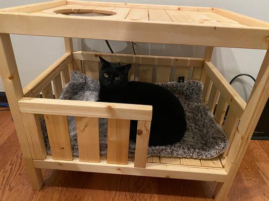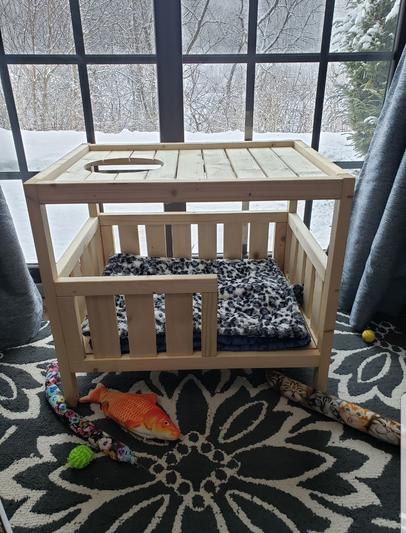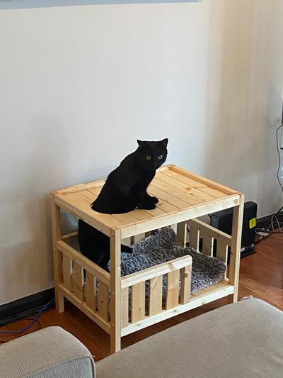 Fist of all, assembly is super easy and this cat house bed is of good quality. I assembled it within 5 min using my electric screwdriver. It might take 10 min if you do it with a regular screwdriver. Both of my cats love this cat house bed, especially our black boy named Kater Lysator. The wood is unfinished so you have some room for customization. I chose just to finish the wood with a mixture of 1/3 cup olive oil, 1/3 cup coconut oil and 1 tbs catnip spray. Let it dry for five days and voila... happy Kater.