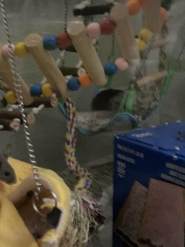 This hammock is intended for use with mice, hamsters, chinchillas, and rats.