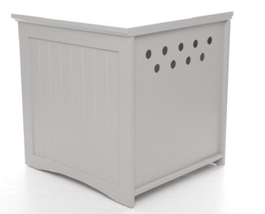 This litter box cover doesn't have a removable bottom. Messes can be easily wiped from the bottom. The wood will not soak up any liquids. When assembled, this unit's sides and door are fully enclosed so no litter escapes out.