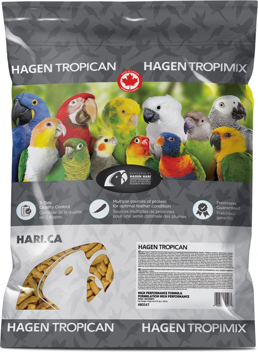 Hari Tropican High Performance Sticks Bird Food, 8-lb bag This product comes beautifully packaged, and I looked forward to trying it out on Charlie (blue-and-gold