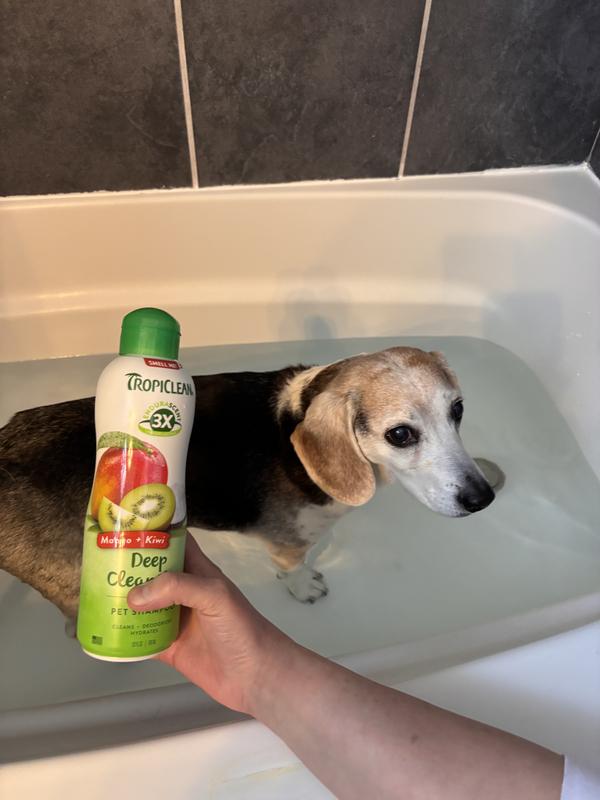 I absolutely love the Mango Kiwi TropiClean dog shampoo! The scent is amazing — fresh, fruity, and it actually lasts for days after bath time. My boys look and feel