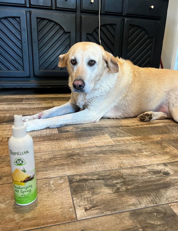 If you hate floral scents that make your dog smell like they rolled through Grandma’s perfume counter — this is your new best friend. We use TropiClean’s Pineapple