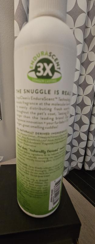 Smells so good using it between baths to keep the pup smelling good and looking fine. Our little boy loves to sleep under the blankets and this sometimes makes him a little sticky but this allows us to let him sleep where he wants without having to over bath him.