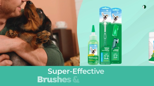 • Complete your dog’s dental care routine with Fresh Breath brushing gel and water additive drops (each sold separately) for the ultimate defense against plaque, tartar, and bad breath!