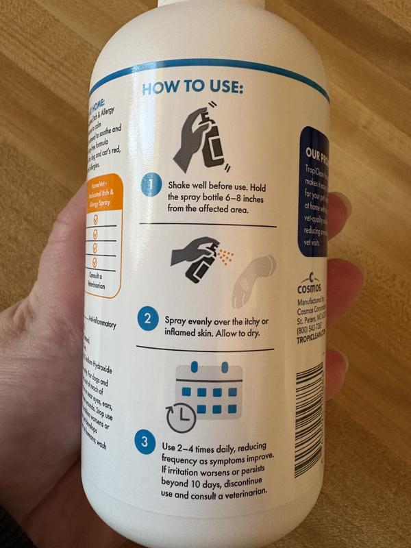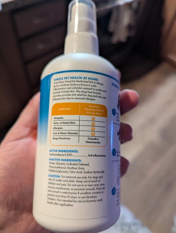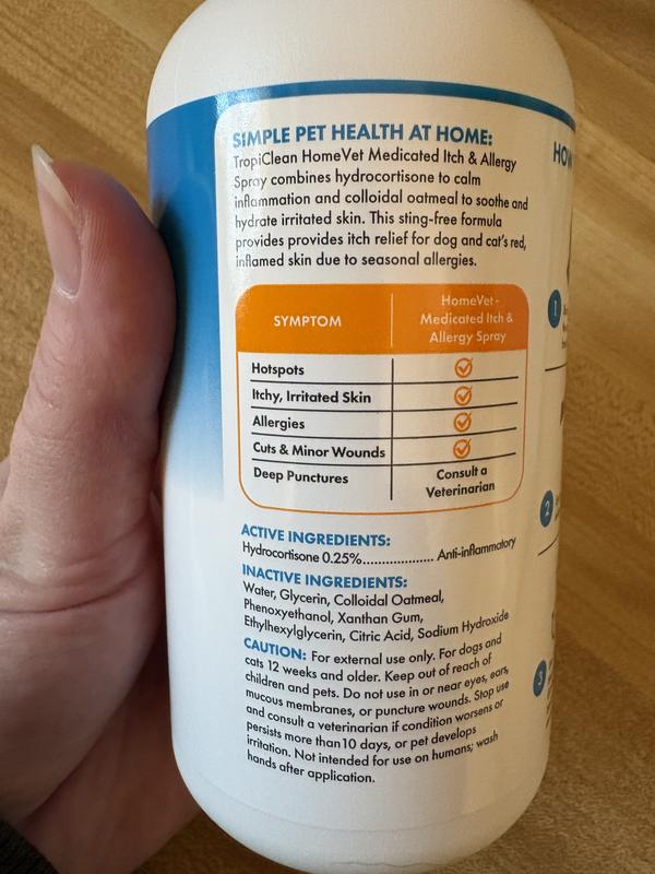 TropiClean HomeVet Medicated Itch & Allergy Dog & Cat Spray, 8-fl oz bottle