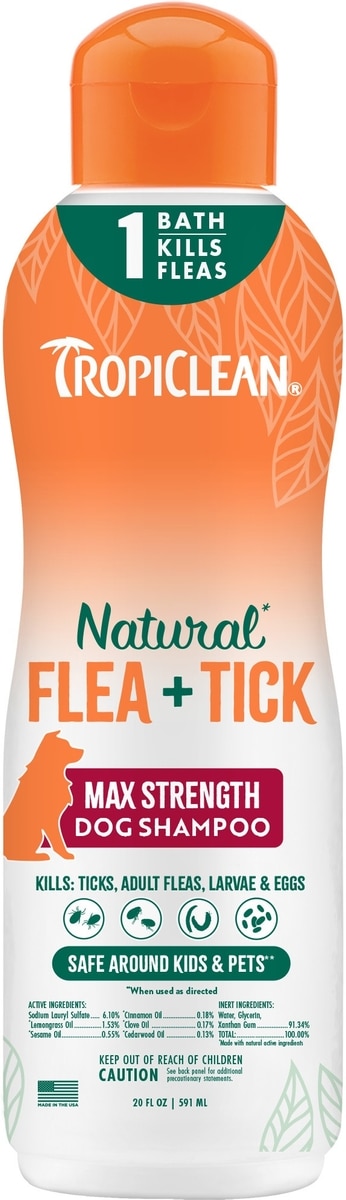TropiClean Maximum Strength Natural Flea & Tick Treatment Dog Shampoo, 20-fl oz bottle