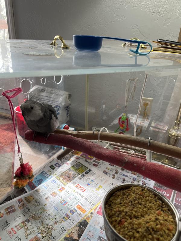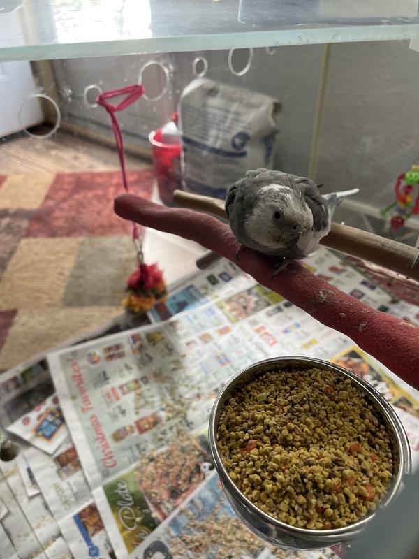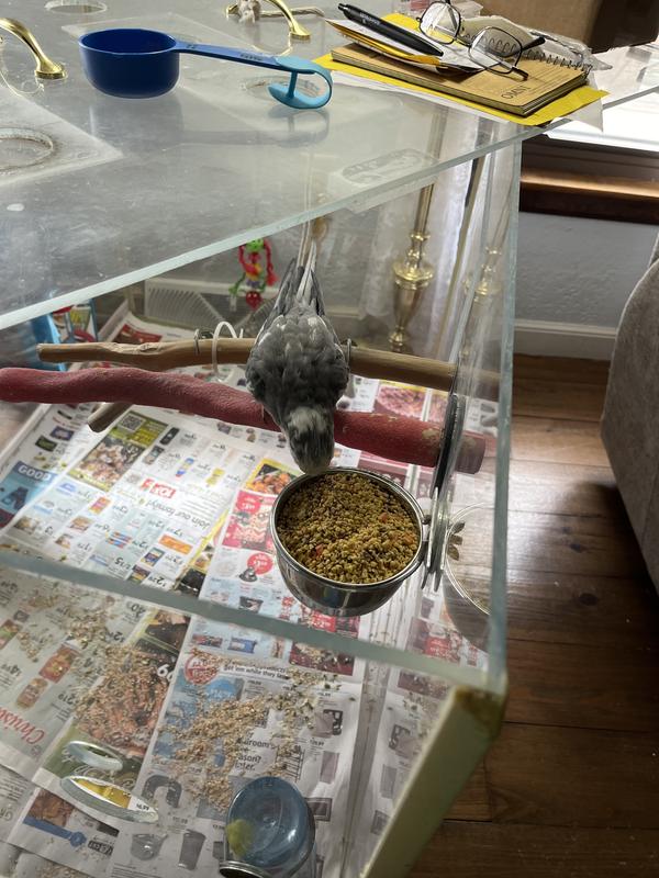 To keep your pet bird healthy, the water cups should be cleaned daily and unsoiled food morsels should be replenished as needed. Monitor your pet bird for daily consumption of food.