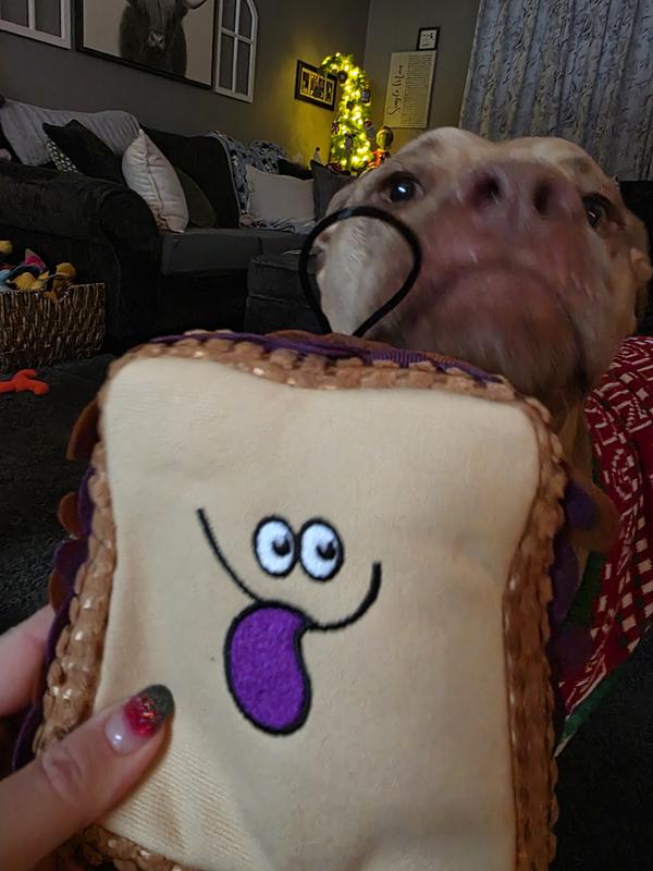 • Keep your pup active and entertained with the TrustyPup PBJ Tough Squeaky Dog Chew Toy.