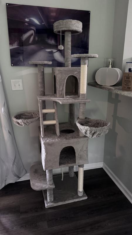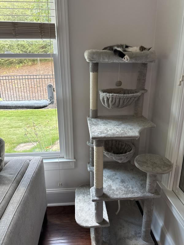 - This tree is purr-fect for multi-cat homes, with a condo for sleeping, a perch for relaxing, and a scratching board and posts for playing to keep all your kitties occupied.