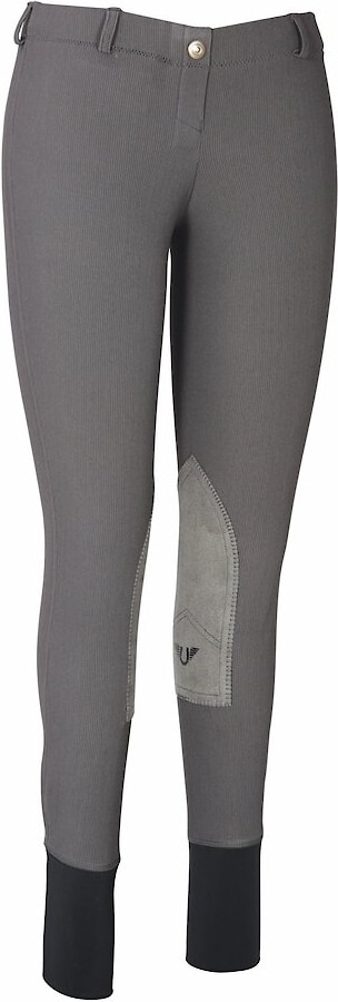 TuffRider Ladies Ribb Lowrise Pull-On Knee Patch Breeches, Dark Charcoal, 26