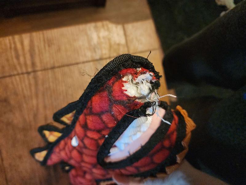 I spent 200 on various Tuffy dog toys and my dog was able to annihilate them that same day. Popped stitches. Stuffing coming out. I know that my dog isn’t some machine.