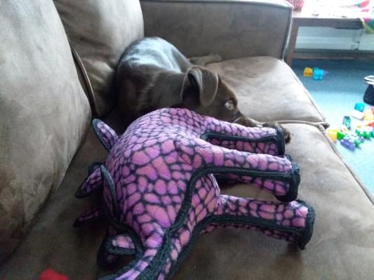 My Golden Retriever loved it to extinction in less than 10 minutes. We had the pig for years before it went to the great pig sty in the sky so we were really expecting great things from Dinosaur unfortunately I had entrails all over the floor in minutes.