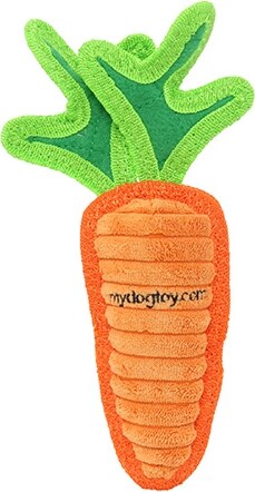 Tuffy's Funny Food Jr Carrot Squeaky Plush Dog Toy, Orange