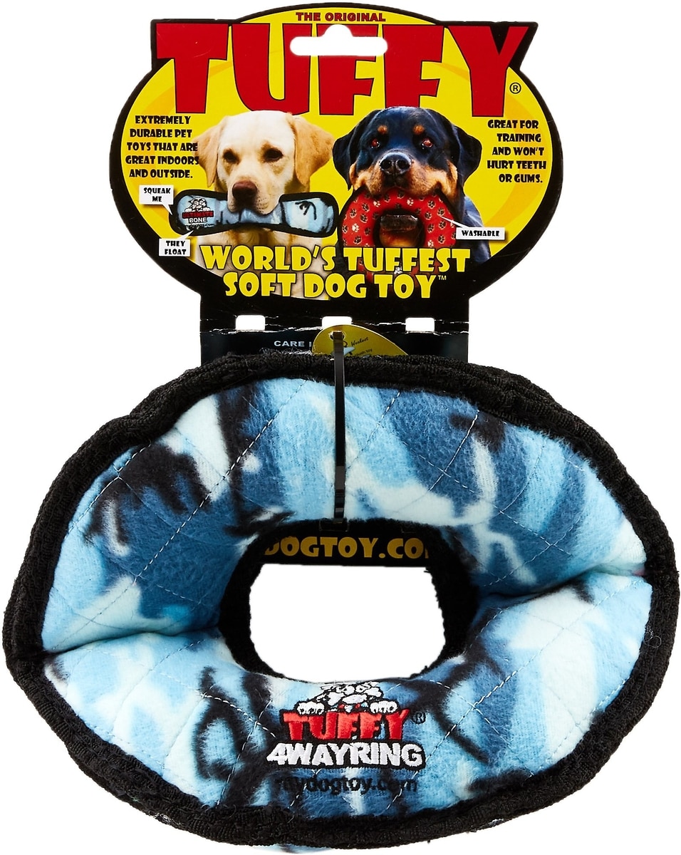 Tuffy's Ultimate 4-Way Ring Squeaky Plush Dog Toy, Camo Blue