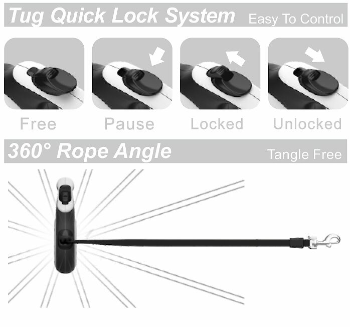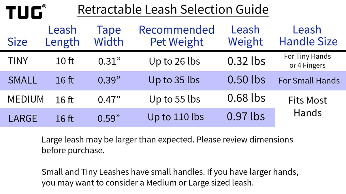 The TUG Retractable Tape Dog Leash uses a tape styled leash.