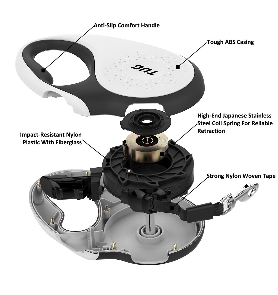 TUG Nylon Tape Retractable Dog Leash, White, Large: 16-ft long