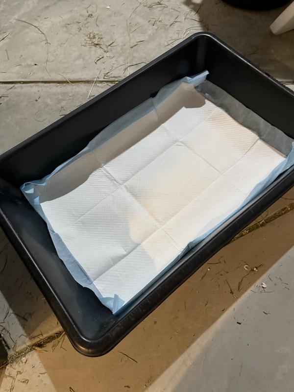 I really like the size of this training pad and the fact that it had sticky parts on each corner to help it stay in place. I use it for litterboxes for my rabbits