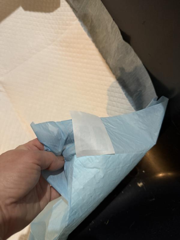 While I appreciate the large size and the adhesive packages, these puppy pads didn't match my expectations. I have a 7 year old pitbull with separation anxiety who frequently pees in the living room when I leave for work. I left 2 of these pads in her usual pee spot. When she did pee on them, very little urine was absorbed. Most of it ran off, creating a larger mess than there would be without using the pads at all. The adhesive patches got stuck to my floor and had to be scraped off, probably because they were saturated with urine. That said, these may be useful for smaller, younger dogs who are learning to potty train. The generous size would definitely be helpful in that capacity. While these pads didn't meet my individual needs, I could see them being useful for their primary purpose of potty training.