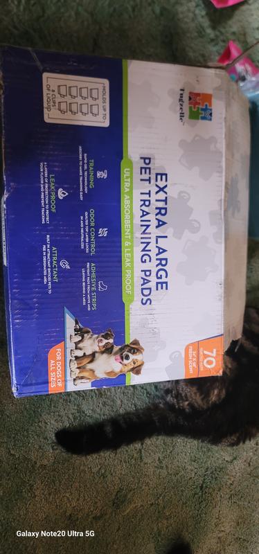 tugzelle extra large pet training pads, are large enough for a large kennel or area incase of pet accidents. the pads are good for puppy training areas.