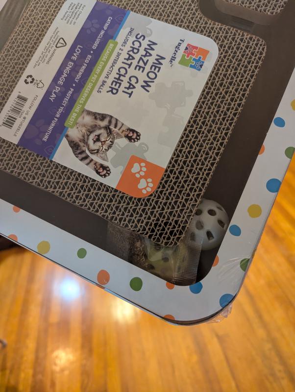 The Meow Maze looks just like it does in the product photo, nicely made with very scratchable cardboard. I sprinkled the catnip and placed the maze nearby other toys. Finicky kitty was interested in this new addition right away! As you see in the photos, after a sniff, the balls had to be reached for and bopped around.