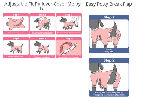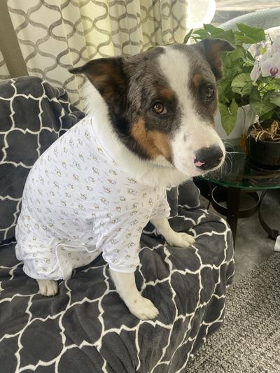 Great little outfit for post spay recovery for shih-poo. Only complaint is it shrank when I washed it before use. It still fit more or less, it was definitely