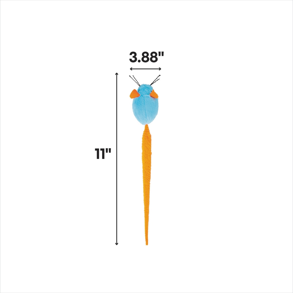 It has a fun colorful tail. It’s makes a nice jingle noise to get their attention. Thy love to bite it and fling it around