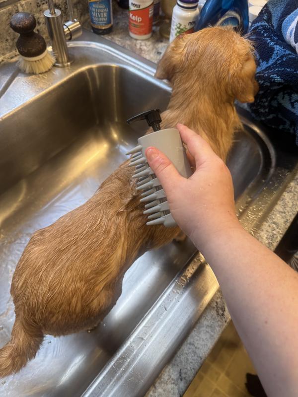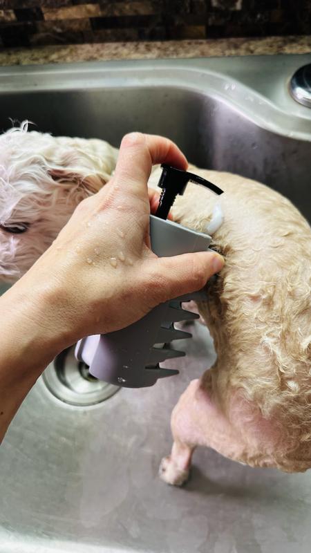 Tweezerman 2-in-1 Shampoo Dispenser & Bath Massage Dog & Cat Brush, Grey