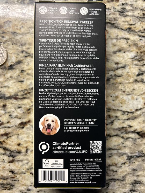 Tweezerman Stainless Steel Portable Tick Removal Tweezer for Pets
