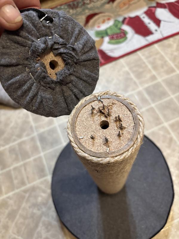 The balls in this scratching post are designed to stay inside the base.