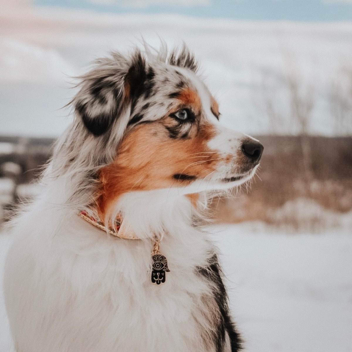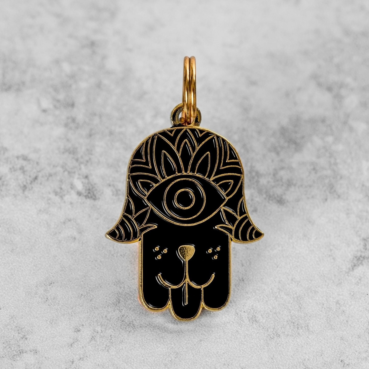 Two Tails Pet Company Hamsa Brass Non-Personalized Dog ID Tag, Black/Gold
