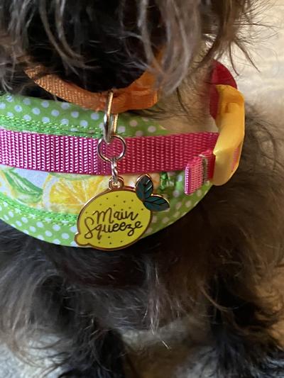 My dog has a collar with lemons and when I saw this tag I knew she had to have it. I was surprised how quickly it came and the quality. So cute!