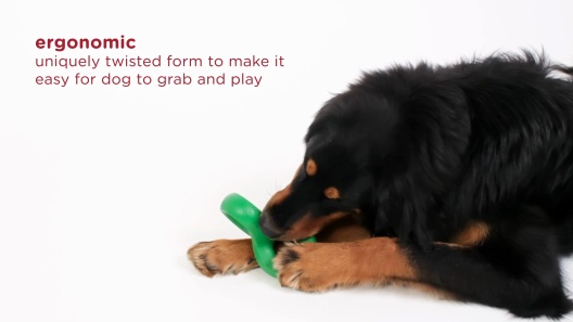 Luna loves this toy. I like the shape. It is one of her hardest toys, and I was hoping it would be indestructable, but she is a very agressive chewer, and was able to bite off lots of small pieces. She likes tossing it and playing fetch with it, but it is pretty heavy.