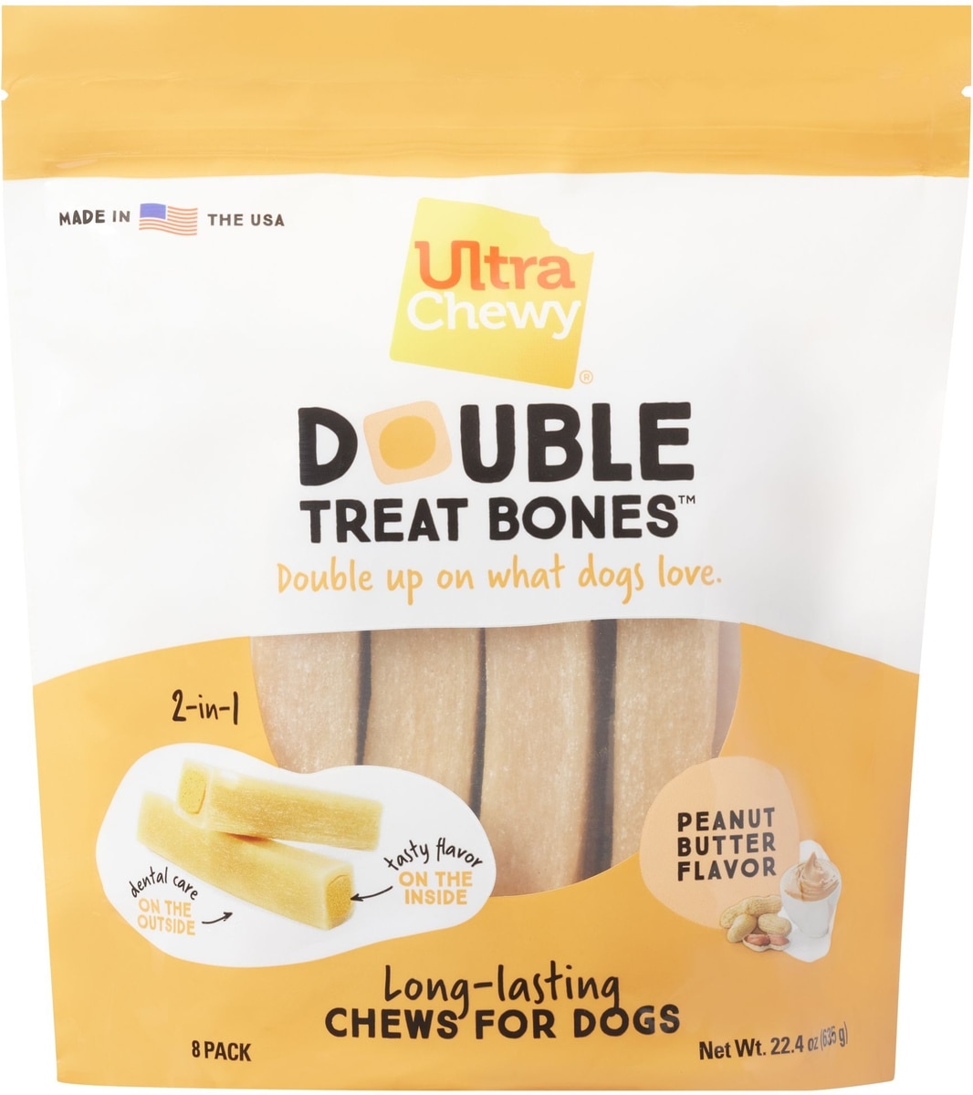 Ultra Chewy Double Treat Bone Peanut Butter Flavor Dog Treats, 8 count