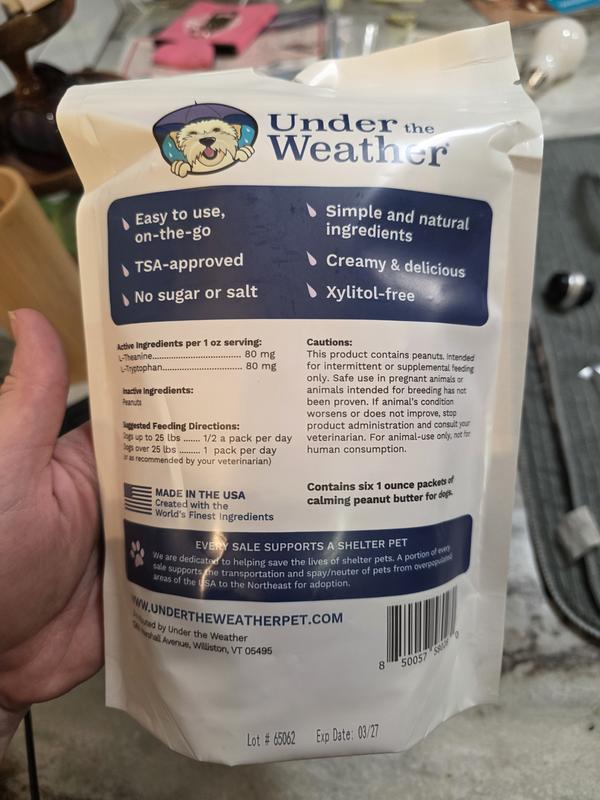 Under the Weather PB & Chill Peanut Butter Calming Gel Supplement for Dogs, 1-oz pouch, case of 6