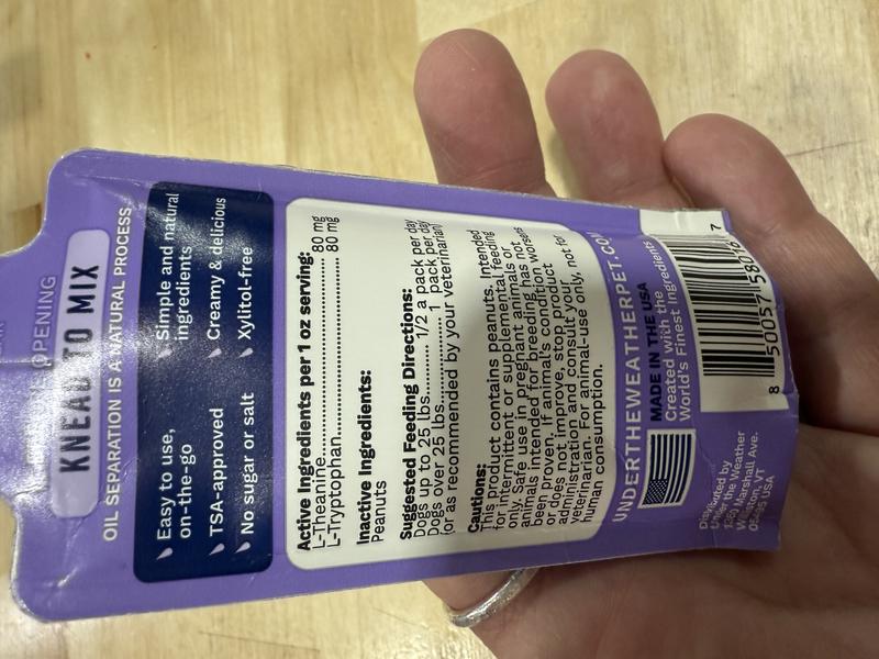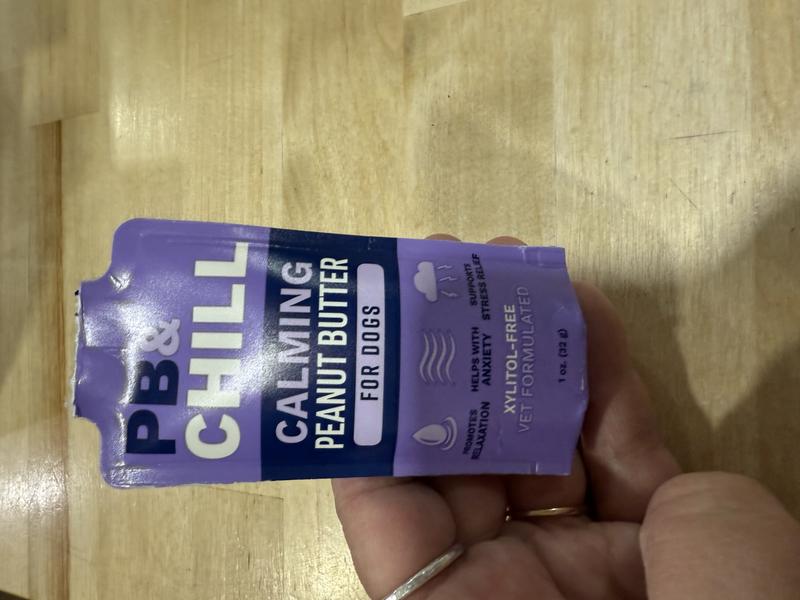 Nice little treat packets for the pups. My only complaint is that the rippable top left stretched plastic dangling at the top, which I had to cut off with scissors. I suggest just using scissors to the cut the top instead of ripping. Otherwise, it's peanut butter! It's seems to be well made and nicely packaged (other than the plastic stretching when you try to rip the top). As for the calming nature, it did seem to relax our pups a little bit, but I'm not exactly sure the extent of that. Either way, what dog doesn't love a good peanut butter snack?!