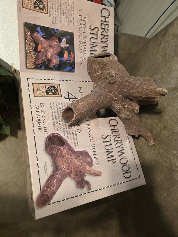 Underwater Galleries Fish Tank Hollow Ceramic Cave Log Fish Hideout, Mahogany, Large, 1 count
