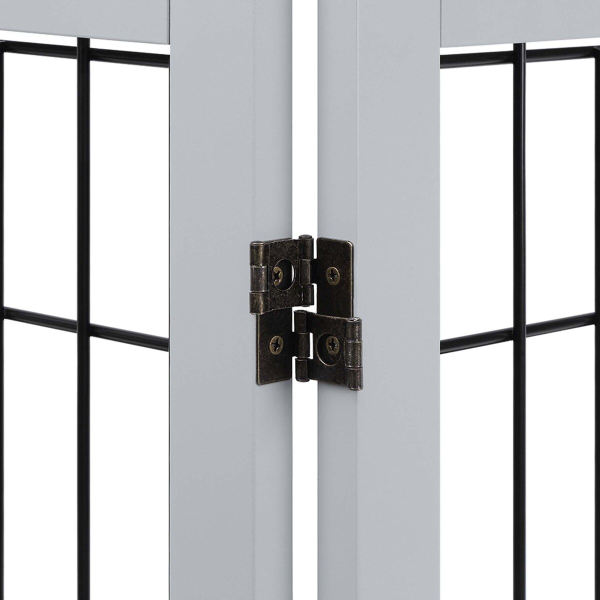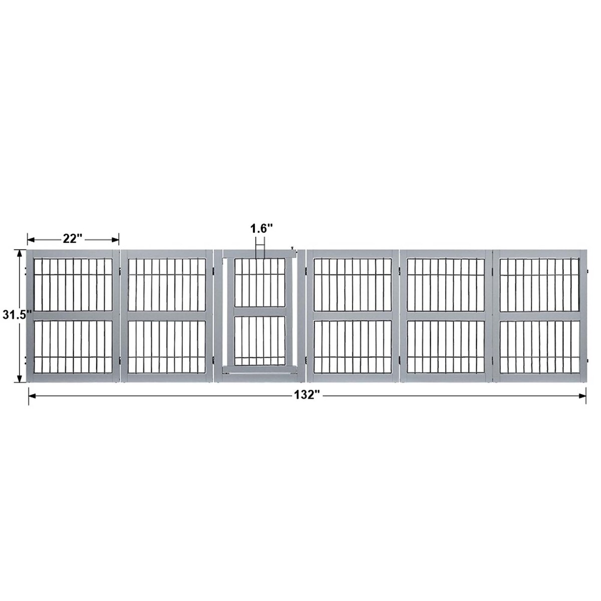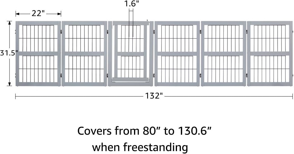Unipaws freestanding pet gates feature up to six separate panels and sturdy hinges that allow multiple configurations. Fold them into a Z or U shape, place in entryways, halls, or staircases-or arrange in a rectangle or hexagonal shape to create an enclosed playpen for your dog.
