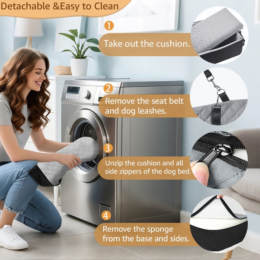 Unipaws Full Coverage Car Booster Seat for Dogs, Grey, 47-in