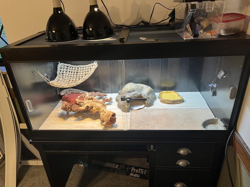 This terrarium is available in a 50-gallon option and a 110-gallon option.