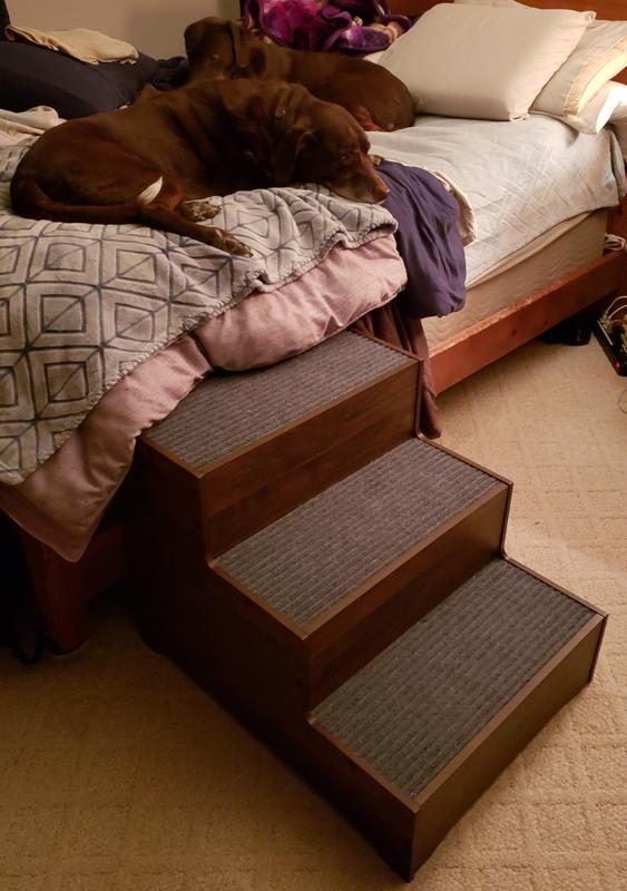 I have 2 older GSP dogs and these steps work perfectly. The width is perfect (wider then other steps out there) which makes it much easier for my dogs to get up and down off the bed. Also really nice quality. I didn't want foam or cheap plastic, so I opted to try these. Definitely recommend if you're looking for something stable and wider for larger dogs.