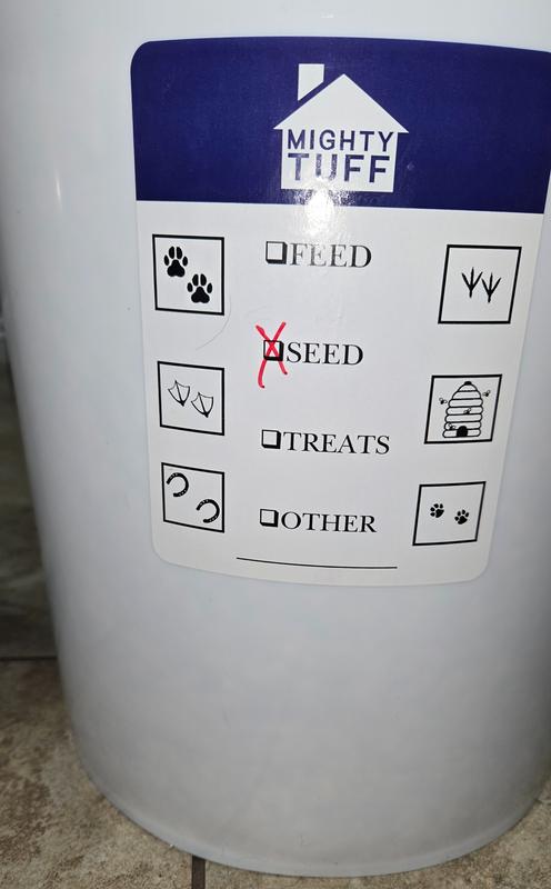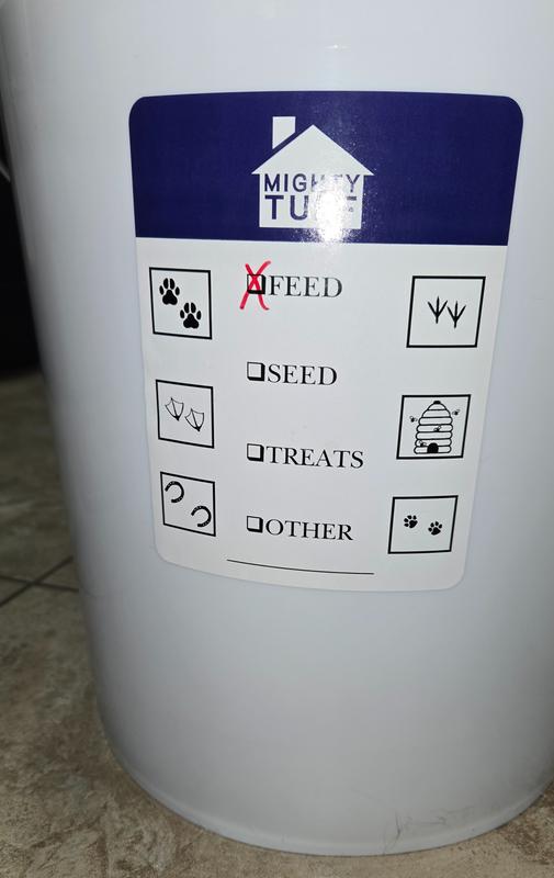 - The decal that allows you to conveniently label the contents inside, so you always know what you’re grabbing—whether it’s treats, birdseed, or other supplies.