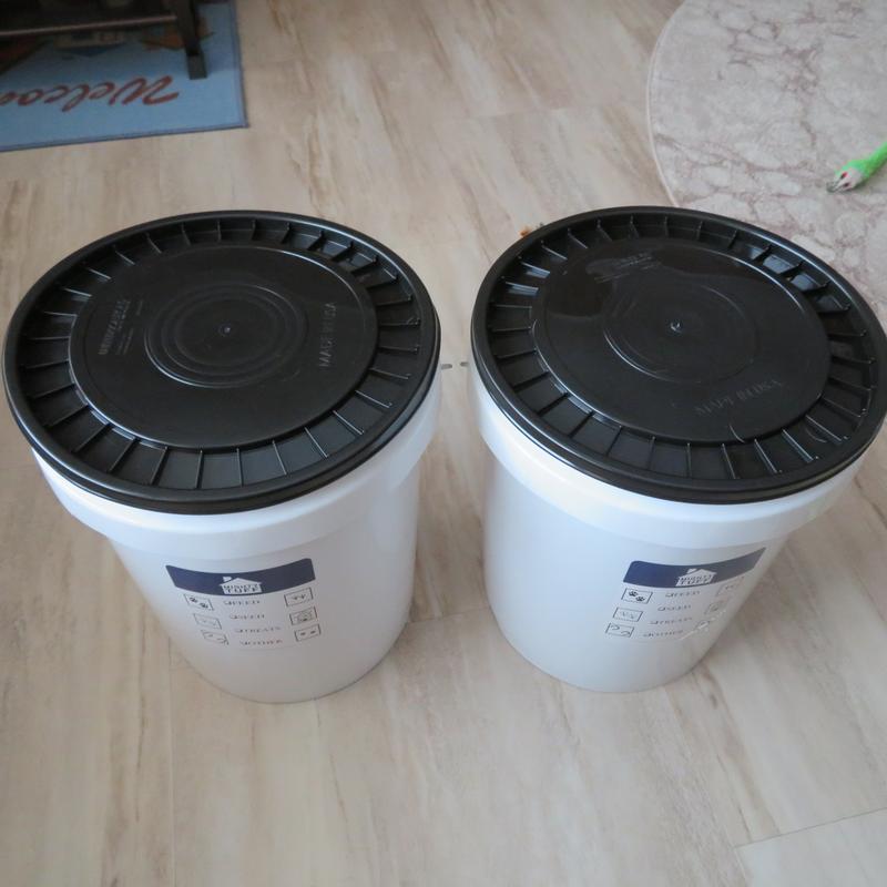 These food pails are good quality. I like that they are made in USA & BPA free. No weird plastic smell at all. I also like the label to mark what's inside. Sturdy