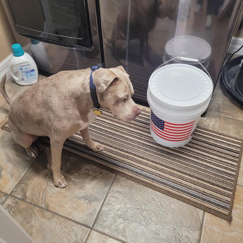 This dog food bucket is both functional and visually appealing with its cute American flag design. It holds a decent amount of dog food, making storage easy and convenient. The sturdy construction keeps food fresh, and the patriotic touch adds a nice flair to any space. A great choice for pet owners looking for a practical yet stylish storage solution!