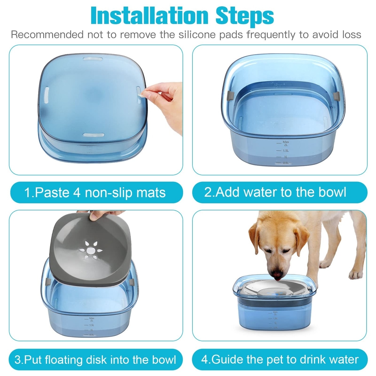 UPSKY Spill Proof, No Splash Non-Skid Plastic Slow Feeder Dog & Cat Water Bowl, 2-L, Blue
