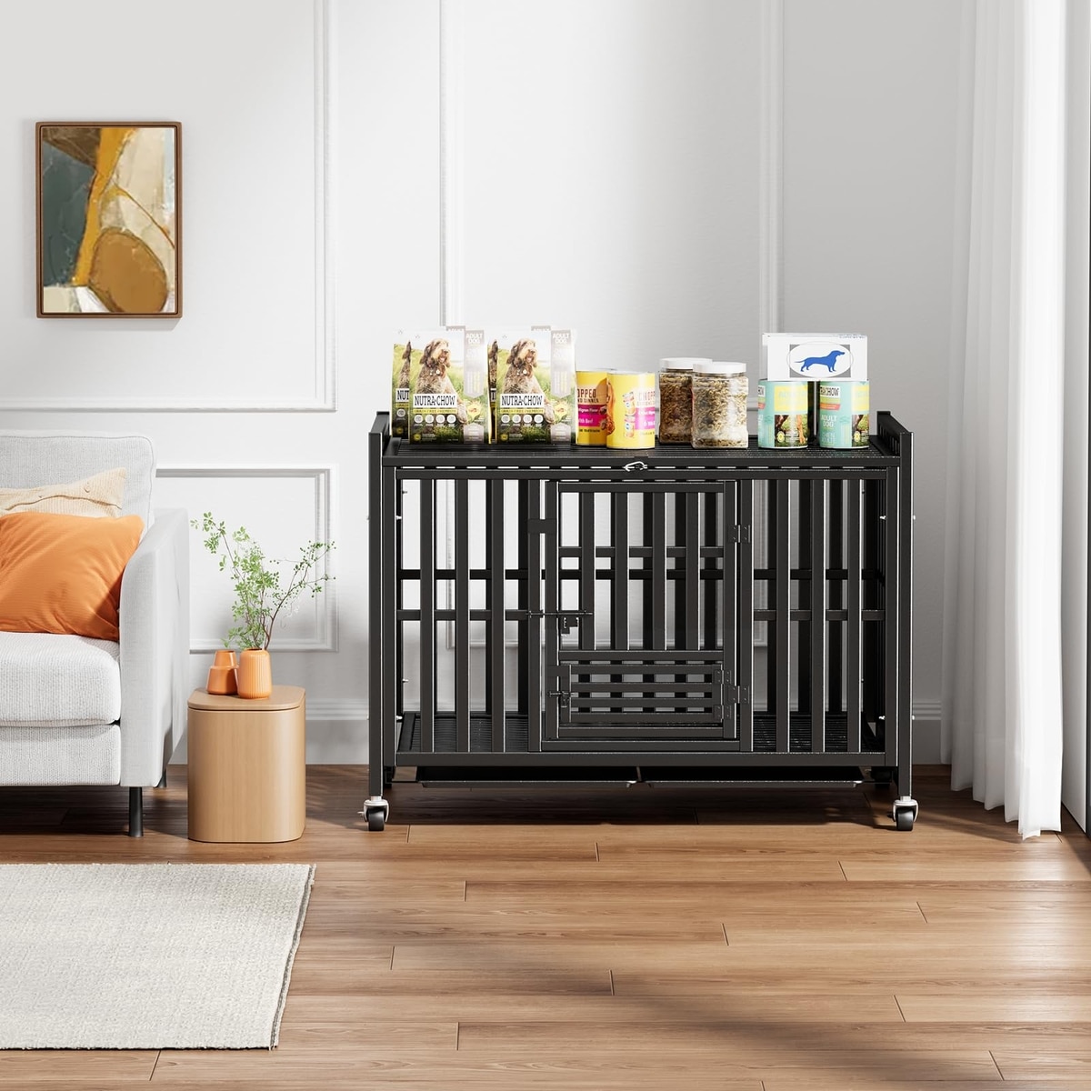 This crate features three access doors—front, top, and feeding—for your convenience.