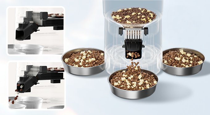This jam-proof automatic food dispenser's design lets you choose between 1, 2, or 3 bowls, making it perfect for multi-pet homes.