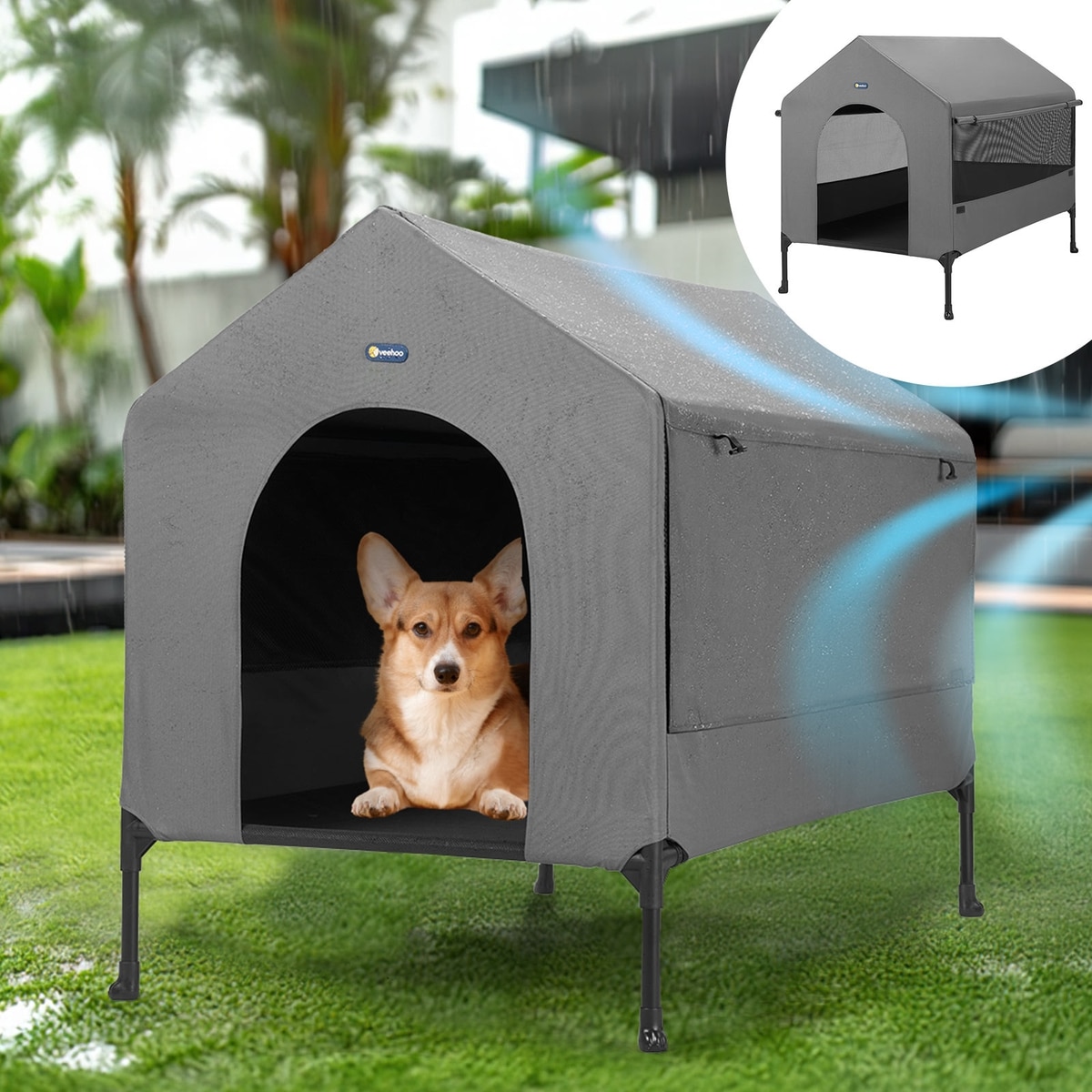 Veehoo 2-in-1 Indoor & Outdoor Elevated Cot Bed Dog House, Sky Grey, Sky Grey, Medium