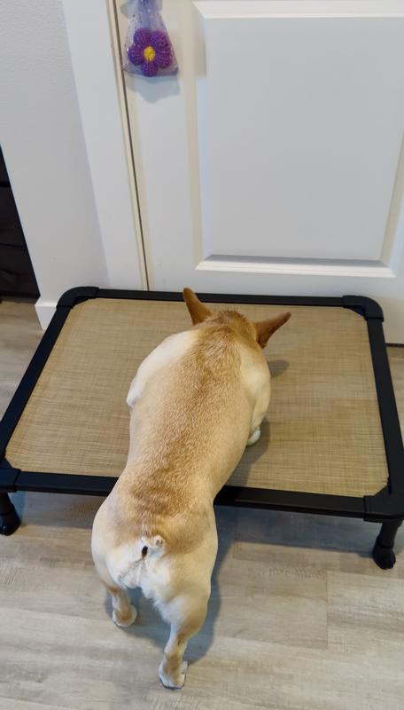 bought the Veehoo Chew-Proof Rustless Elevated Dog Bed, Medium, Beige Coffee, for my French Bulldog, and she loves it! It was super easy to assemble, feels sturdy, and the size is just right for her to stretch out or curl up. I like how it keeps her off the floor, great for air circulation and cleanliness. The material is breathable and seems durable so far. Bonus: she jumped right on without hesitation! Highly recommend for small to medium dogs.