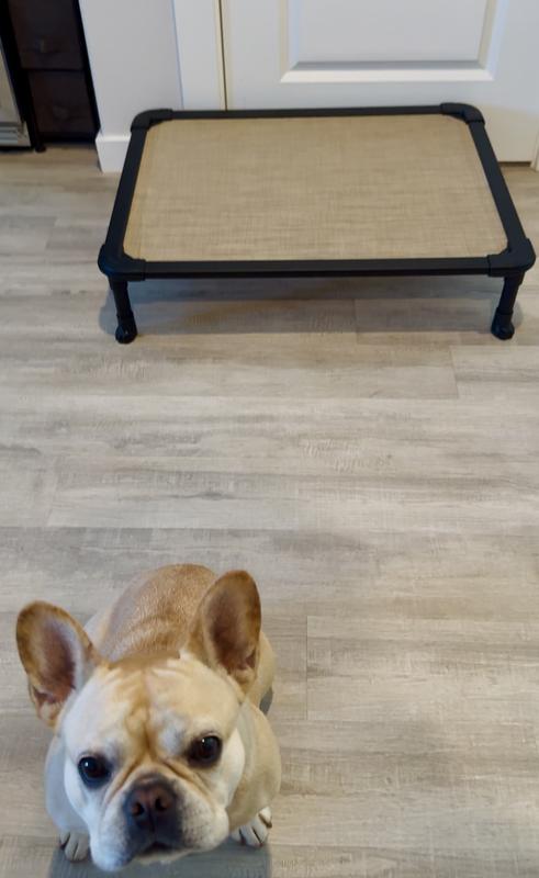 bought the Veehoo Chew-Proof Rustless Elevated Dog Bed, Medium, Beige Coffee, for my French Bulldog, and she loves it! It was super easy to assemble, feels sturdy,